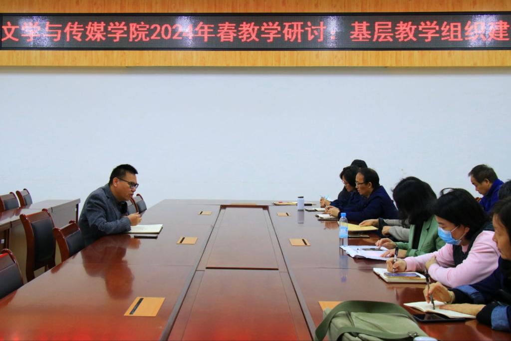 3月7日下午,文学与传媒学院在我校东校区至善楼309会议室召开基层教学组织建设研讨会。会议由该院副院长郑立峰主持,各专业系主任、教研室主任参加会议。