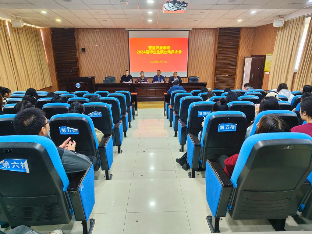 3月12日,智慧农业学院于东校区博士论坛召开2024届毕业生就业动员大会暨优秀校友就业经验分享会。学院党政班子成员,毕业班班主任,辅导员及全体在校毕业年级学生参加会议。会议由该院党委副书记兼副院长谭志坚主持。