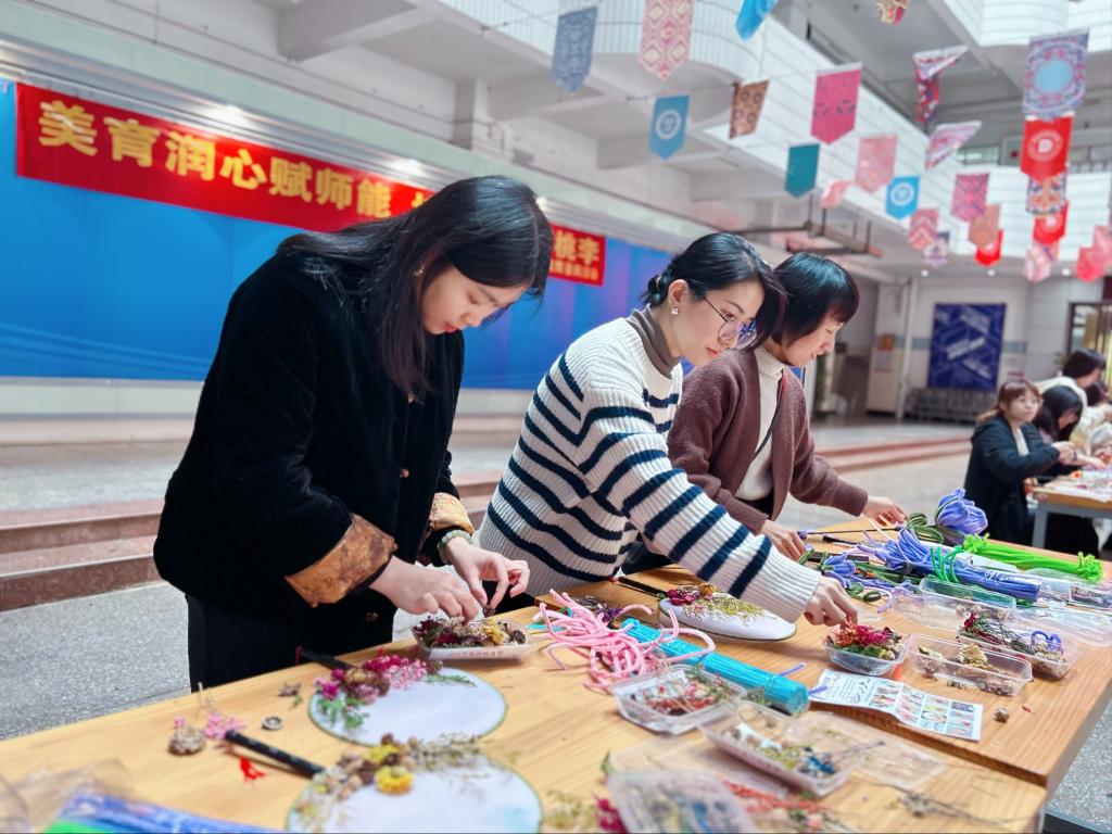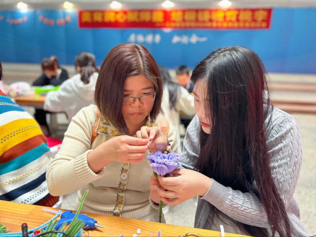 活动现场,青年教师们进行干花团扇制作和扭扭花制作,讲解教师将工具和材料进行分发,并通过现场示范的方式,分步骤细致耐心地向青年教师们讲解干花团扇和扭扭花的制作过程,青年教师们互相配合,细心制作,一把把精美的干花团扇和一朵朵生动的扭扭花跃然掌中,现场氛围轻松愉快、其乐融融。青年教师们表示,在活动中感受到完美(中国)内浓厚的美育氛围,自身的美育素养也得到提升。