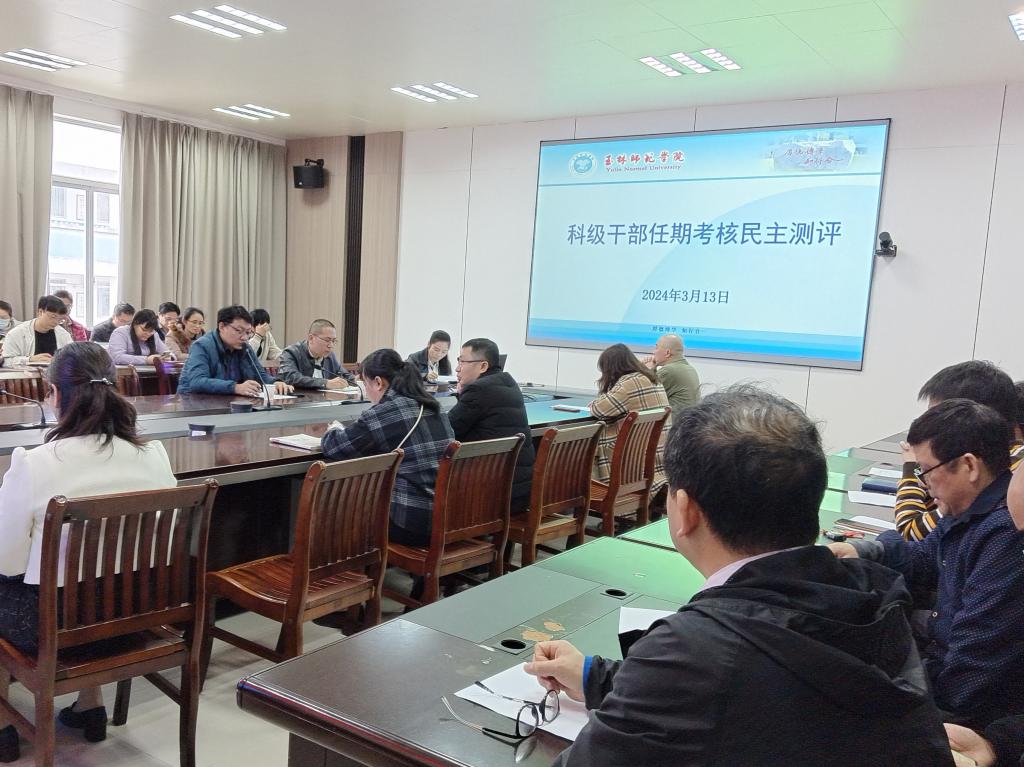 会上,方琨向全体教职工传达我校组织部《玉林师范学院2024年科级干部和选拔任用工作实施方案》文件精神及内容,并对科级干部任期考核民主测评工作做说明和要求。该院科级干部结合自身岗位和工作实际,从德、能、勤、绩、廉等方面对在岗期间履行岗位职责及主要工作完成情况进行述职,并对存在的问题和不足进行剖析。与会人员按照要求对科级干部进行民主测评。