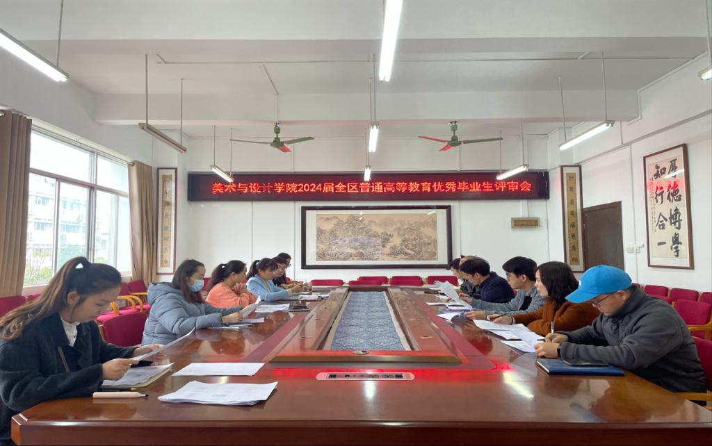 3月15日上午,美术与设计学院于我校东校区博学楼3-407会议室召开2024届全区普通高等教育优秀毕业生评审会,该院党委书记黄培英及学生工作领导小组成员参加会议,会议由党委副书记周美艳主持。