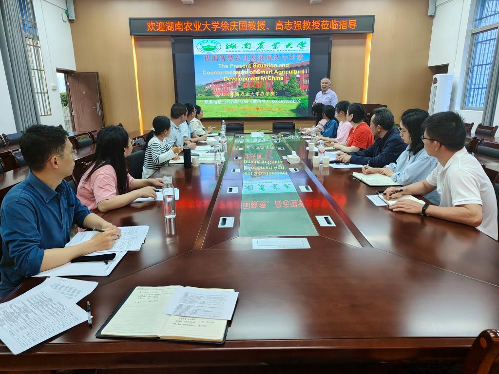 3月27日下午,湖南农业大学徐庆国教授、高志强教授到我校东校区原行政楼304会议室为智慧农业学院师生举办讲座。该院领导班子、部分教师及学生代表参加。