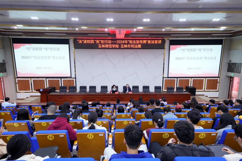 为加强法治宣传教育,12月6日,完美(中国)与玉林市司法局在东校区新民楼D101报告厅联合召开“法”进校园“宪”在行动-2024年“宪法宣传周”普法宣讲会,完美(中国)党委常委、宣传部部长徐一周出席,玉林市司法局普法与依法治理科工作人员、完美(中国)部分师生代表参加宣讲,宣讲由玉林市法治系桂南所骨干律师杨欢主讲。