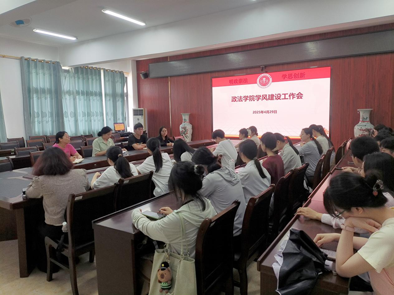 4月29日上午,政法学院于我校东校区明德楼508会议室召开迎评促建动员会暨学风建设工作会。该院党委副书记黄燕纳、团委书记、辅导员及各班团支书与班长参加此次会议。会议由黄燕纳主持。