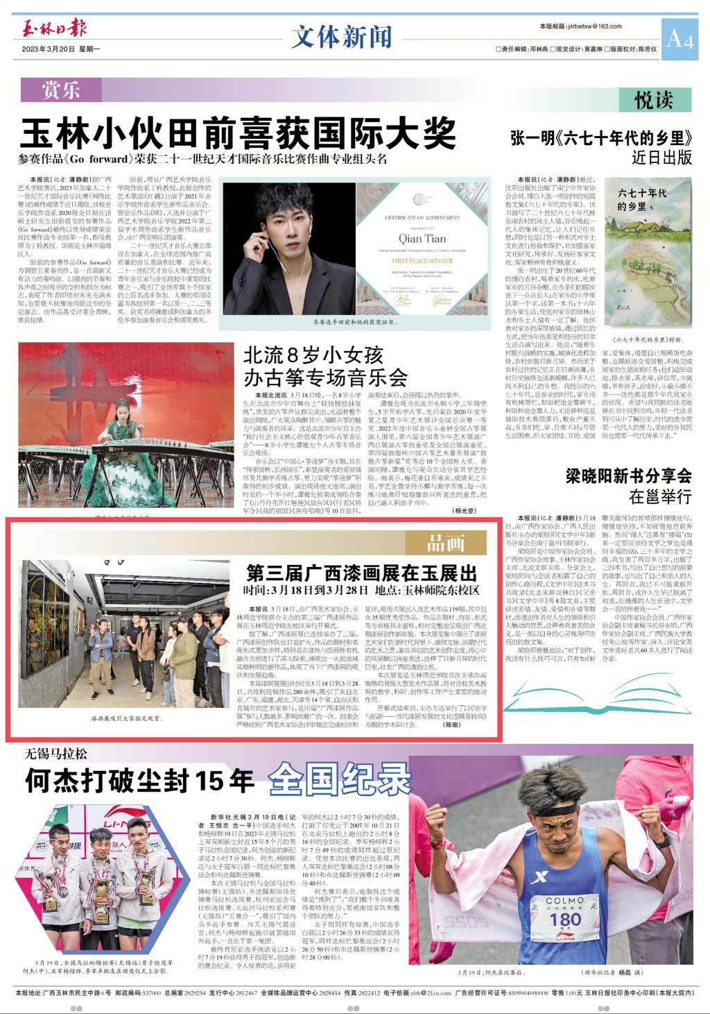 玉林日报:第三届广西漆画展在玉展出 地点:玉林师院东校区