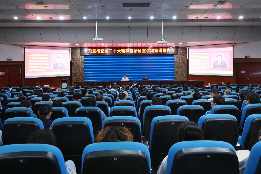 10月16日上午10时,中国共产党第二十次全国代表大会在北京人民大会堂隆重召开。我校迅速兴起了学习宣传贯彻党的二十大精神热潮。我校全面系统组织学习培训,党员干部、师生通过校属理论学习中心组专题学习会、政治理论学习会、主题党日活动、读书班、统一战线活动“十百千”团学骨干专题培训等形式积极开展了党的二十大精神大学习活动;我校扎实开展集中宣讲,组建我校领导、博士教授、二级学院党委书记、“00”后优秀学生代表等56人宣讲团,开展党的二十大精神宣讲进校属单位、进班级、进宿舍、进支部、进社团、进实验室活动;我校贯通网上网下、内宣外宣,抓住重点时间段对党员干部、师生学习贯彻党的二十大精神进行宣传报道。组织开展艺术思政教育《新时代青春之歌》音乐剧等艺术展演活动,大力宣介党的二十大精神。