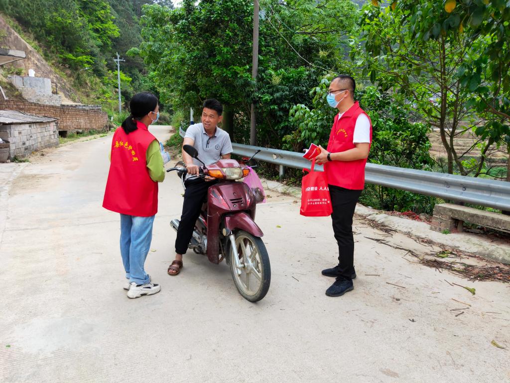 保安全,护稳定,把疫情防控扛在肩上。李新东一手抓脱贫攻坚成果巩固提升,一手抓疫情防控全面阻击,冲锋在前,不畏艰险,用实际行动筑起良民村疫情防控“安全网”,用青春、智慧和汗水守护人民群众生命安全和身体健康。驻村至今,他是巩固拓展脱贫攻坚成果的“前哨员”,也是抗击疫情的“逆行者”。通过大喇叭、拉横幅、发传单、微信群等方式,宣传疫情防控知识,教育引导群众不信谣、不传谣、不造谣,科学认识和防控疫情。遇到不识字的群众,他会耐心地读给他们听,动员和发动群众联防联控、群防群控,避免出现感染情况。推进网格化管控,实行人盯人,把驻村工作队员、村“两委”成员、村民小组长、党员、义务联防联控成员装进网格中,全村一张网,全村一盘棋,将疫情防控与摸排返乡人员结合起来,一并摸排返乡人员务工地点以及生活情况,做到疫情防控与巩固拓展脱贫攻坚成果两不误、双推进,努力提高村民安全感和幸福感。