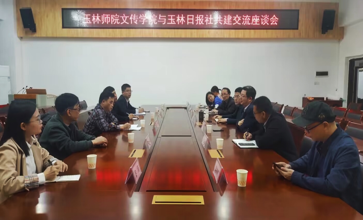 3月3日下午,玉林日报社社长、总编辑林茂生一行到我校交流探讨校社共建相关事宜。我校党委常委、宣传部部长徐一周,文学与传媒学院院长及相关专业教师参加本次交流。双方在东区文学与传媒学院会议室座谈交流。