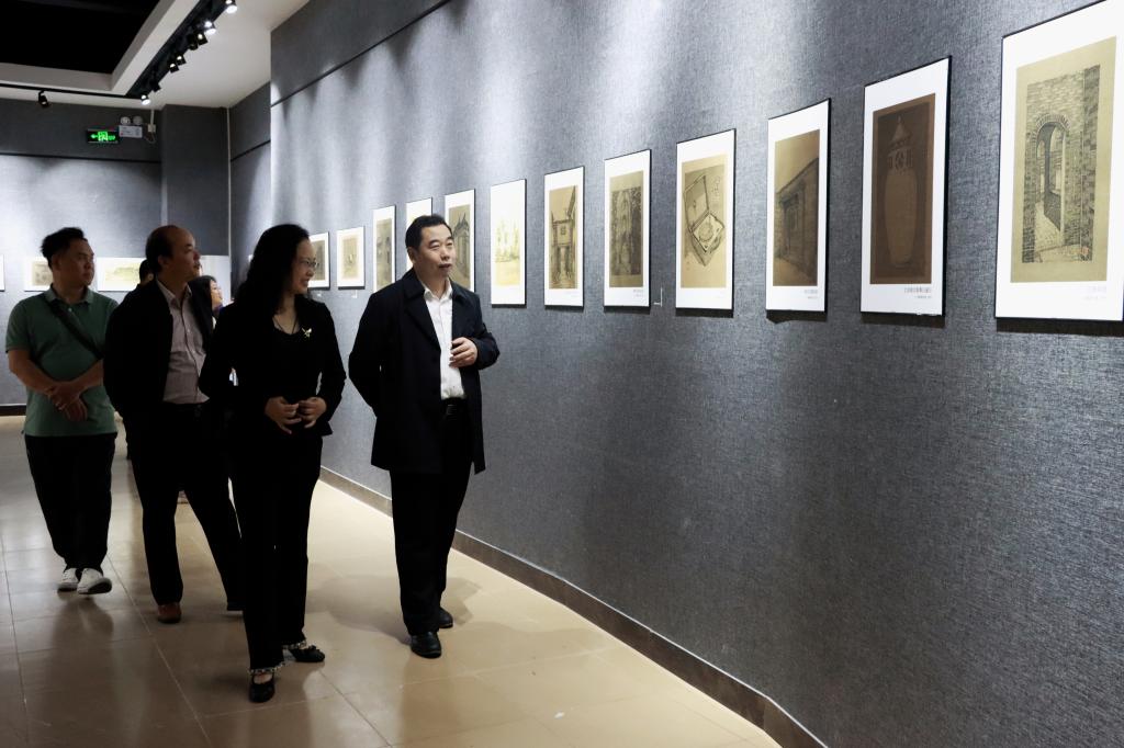 我校校长李伟中为开幕式致辞。他表示,自党的十八大以来,我校玉林历史文化“画说团队”积极响应习近平总书记关于“广大科技工作者要把论文写在祖国的大地上”的号召,积极探寻和挖掘深藏于民间的优秀传统文化。目前,“画说团队”已经成功地走出了一条如何将玉林优秀传统文化创造性转化、创新性发展的新路子,先后出版的《玉林画 话玉林:线条下的文化符号》《千年巡旅 画说玉州》《锦山秀水 大美陆川:线条游走下的山水文化》《千年白州 画说客家:线条下的博白客家文化》《千年古韵 画说容州》《潮涌北流 画说铜州》《凤舞鹿峰 画说兴业》《南流海丝 画说福绵》等“画说系列”丛书,学术性、可读性和收藏价值兼备,开创了钢笔绘画与历史文化脉络梳理范例,开创了首个实现地级市县市区全覆盖的先例,是地方特色文化推介的精品,在学术界和社会上产生了较大影响。新时代,新征程,在党的二十大精神指引下,“画说团队”将不忘初心,牢记使命,踔力奋发,创造更多的文化精品,将八桂大地的优秀传统文化更多、更好地发扬光大,为中华文化现代化高质量发展增添美丽华章。