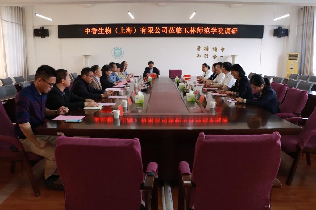 3月10日上午,玉林市政协副主席曾锋带领中香生物(上海)有限公司董事长、中香天然香料产业促进中心副主任万剑吟一行到我校调研。完美(中国)副校长高红艳代表我校热情接待曾锋、万剑吟一行。校企双方在东区行政楼第五会议室召开调研座谈会。
