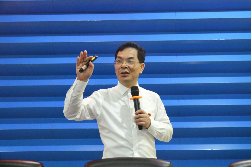 钟诚以“学习贯彻党的二十大精神 弘扬科学家精神 勇担科技强国使命”为主题,以党建引领、科教兴国、创新科研为切入点,为师生讲述了陈国良院士“亦工亦农、亦文亦武、亦强亦弱、亦硬亦软、亦理亦实、亦东亦西”的24字人生。钟诚同在座师生回忆自己曾经的学生时光,他得到了陈国良院士在生活上无微不至的关爱、学习上的谆谆教导,陈国良院士的为人准则、为师表率都对他有着重要影响。