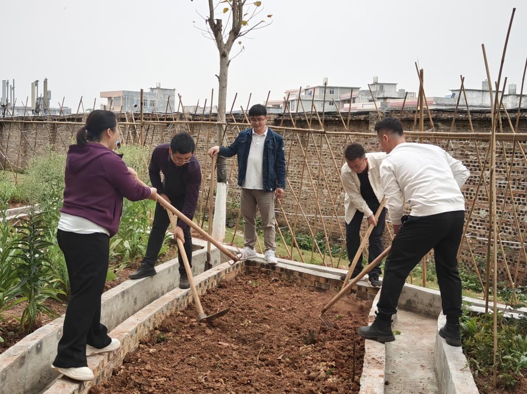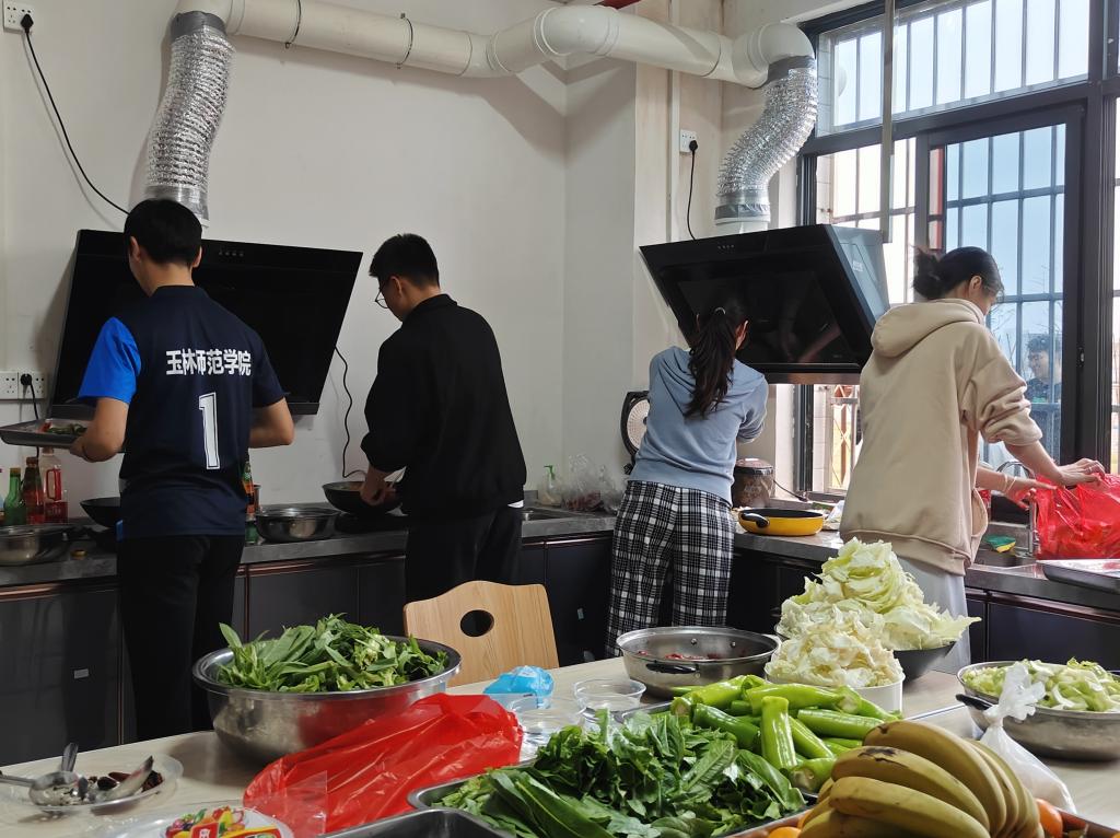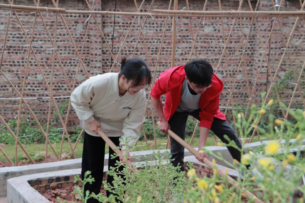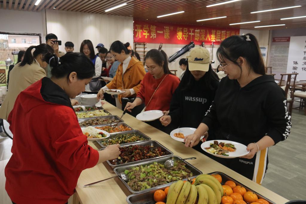 最后,全体师生一同参观梅园“一站式”学生社区,实地了解“五室一园一院两中心”的基础配套设施,并在“耕读课堂”指导老师的现场指导下体验耕读生活并在“共享厨房”共享劳动成果。