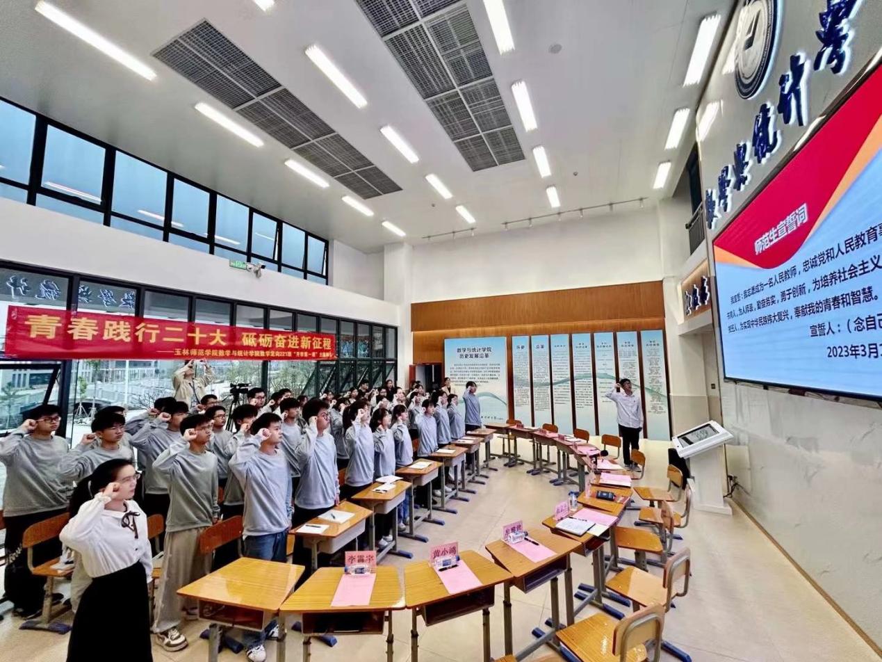 全班学生在铮铮誓言中表决心。班主任做了班会总结点评,希望班级学生谨记师长的敦敦教导和殷殷期望,时刻不忘誓言,努力成长为专业扎实、技能坚实、为人诚实、作风务实的优秀师范生。