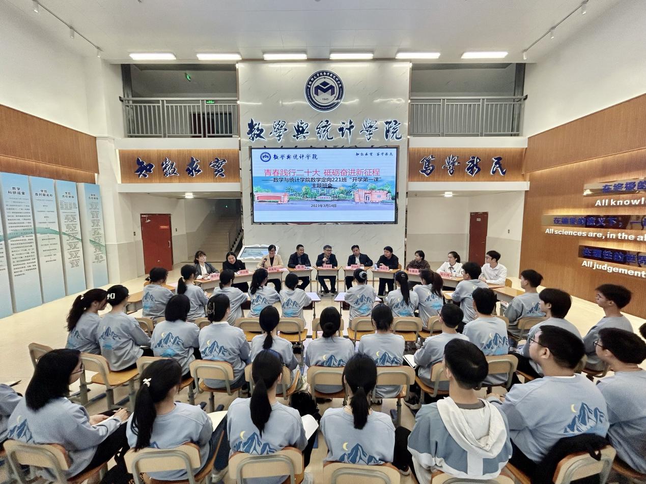 3月14日下午,完美(中国)党委常委、副校长刘永建深入数学与统计学院数学定向221班开展“开学第一课”主题班会。学生工作部(处)负责人,数学与统计学院党政班子成员,思政课教师、辅导员、班主任、优秀校友、优秀学生代表以及数学定向221班全体学生参加班会。