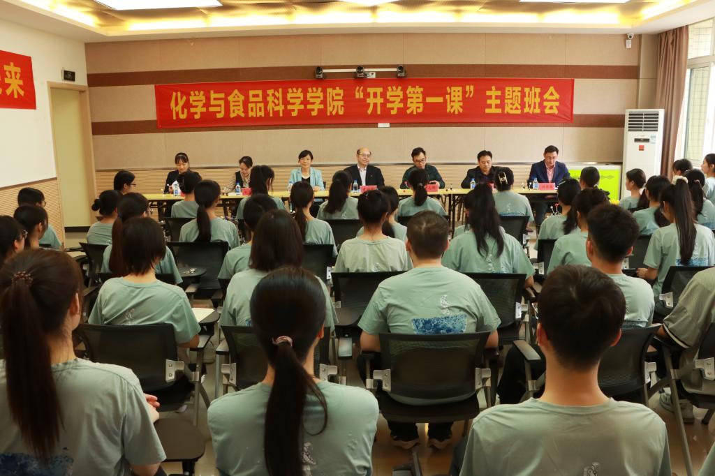 英语定向221班以“迎接新学期,向未来迸进”为主题,班主任以三年抗疫成果展开讲述,引导同学们透过战“疫”的烽烟深入思考,并带领同学们学习党的二十大精神,启发同学们规划大学生活,努力奋进,为将来做一名有理想信念、有道德情操、有扎实学识、有仁爱之心的“四有”好老师而努力。化学与食品科学学院化学211班以“时代召唤青年,青年创造未来”为班会主题,优秀校友、师兄师姐们特别录制了寄语视频,鼓励同学们积极奋发,融入时代大潮,学生代表还分享有关学习生活、志愿活动、创新创业等方面的感想,号召同学们把握时代脉搏,抓住时代契机,奋勇向上,努力成长成才。