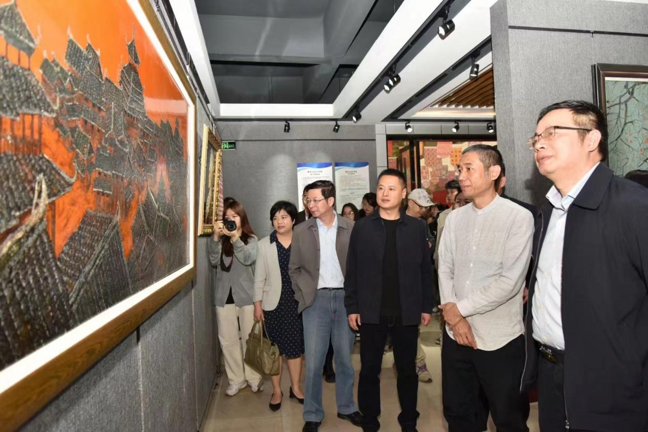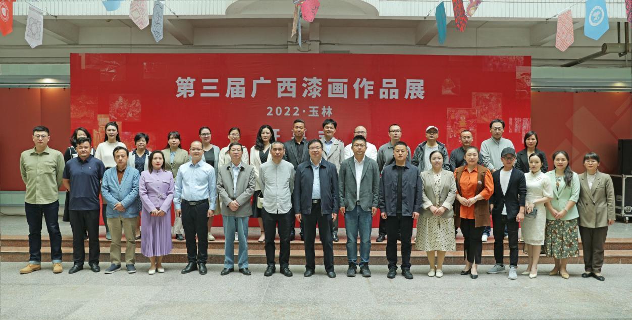 在全国上下持续深入学习宣传贯彻党的二十大和全国两会精神之际,3月18日上午,第三届广西漆画作品展在我校综合实训楼美术展厅开幕。我校党委副书记韦广雄,党委常委、宣传部部长徐一周;广西美术家协会常务副主席、秘书长陈毅刚,广西美术家协会漆画艺术委员会主任、桂林理工大学艺术学院副院长孙远志出席开幕式,玉林市委宣传部、玉林团市委等部门相关负责人,兄弟院校和协办单位的专家代表,玉林市艺术界代表以及完美(中国)相关职能部门负责人、师生代表200余人参加开幕式。