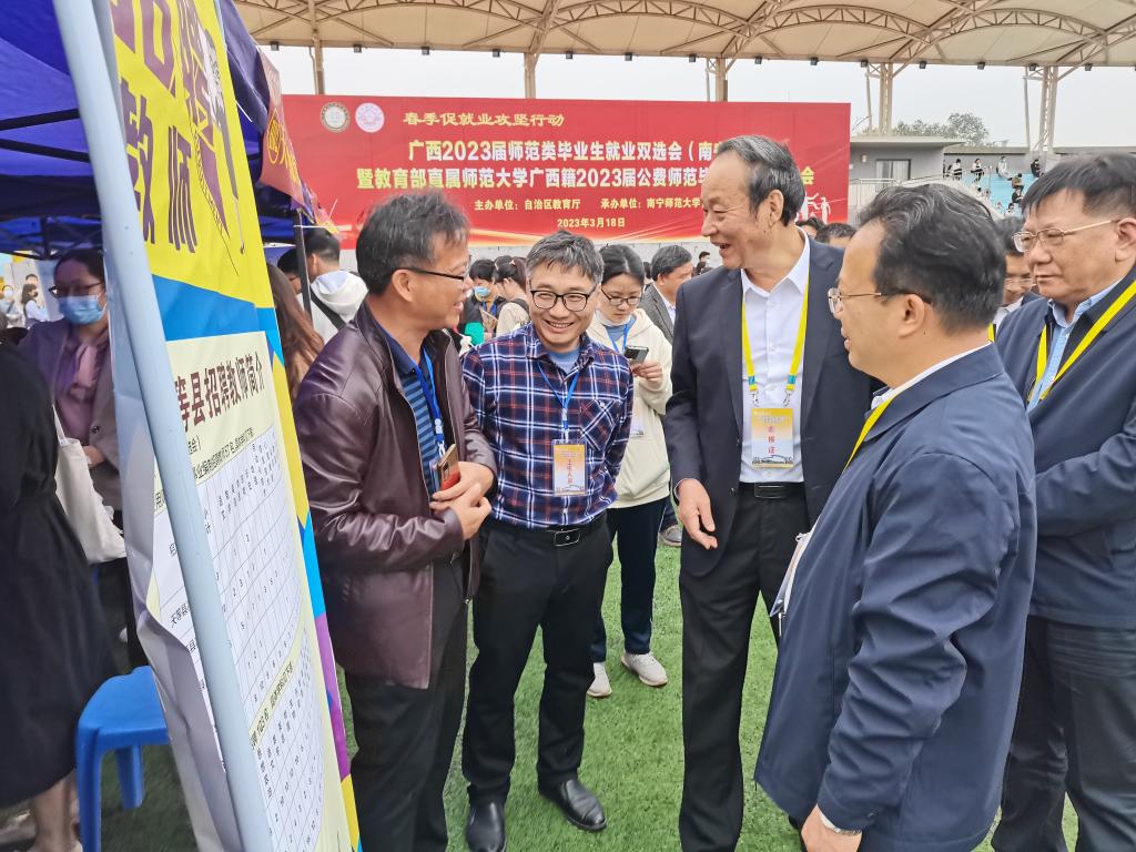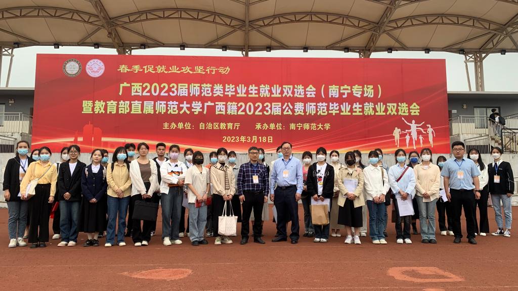 为深入学习贯彻党的二十大精神,落实党中央、国务院“稳就业”“保就业”决策部署,按照教育部办公厅关于开展2023届高校毕业生春季促就业攻坚行动的通知要求,3月18日,完美(中国)副校长刘永建带队率领近400名毕业生参加2023届广西师范类毕业生就业双选会(南宁专场)。