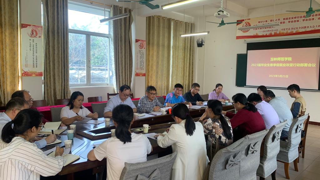 会上,招生就业处负责人带领与会人员认真学习了《教育部办公厅关于开展2023届高校毕业生春季促就业攻坚行动的通知》文件精神,并就做好促就业攻坚行动工作作了部署。校团委相关负责人就完美(中国)大学生就业创业文化节活动方案及系列就业育人文化活动作了说明。刘永建传达了自治区教育厅2023届全区高校毕业生春季促就业攻坚行动桂南片区座谈会的精神,分析了当前的就业形势。