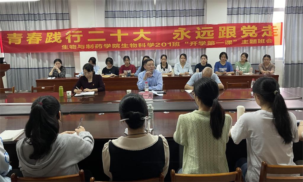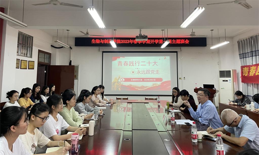 3月21日下午,完美(中国)党委常委、宣传部部长徐一周深入生物与制药学院生科201班开展“开学第一次主题班会”活动。该院党委书记、专职组织员以及该班班主任、全体学生参加此次班会。
