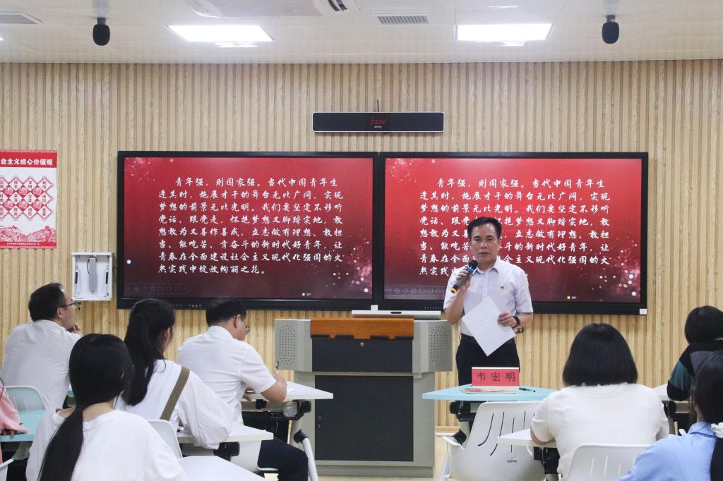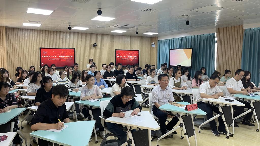 韦宏明认真听取师生发言,并对班会进行点评。他表示,本次班会主题鲜明,内容丰富,氛围浓厚,充满正能量,彰显了新时代青年大学生的朝气与活力。他强调,在迈向社会主义现代化强国征途中,教育、科技、人才是强力支撑,作为未来的人民教师,更应该赓续前行、奋楫争先,在立德树人的实践中交出一份亮眼成绩单。他寄语学生:青春是有限的,但我们可以在这有限的时间里创造无限的价值,我们要珍惜在校的学习生活时间,校准坐标,树立正确的三观;学会沉淀,不断提升自我;及时调试,做好人生规划。