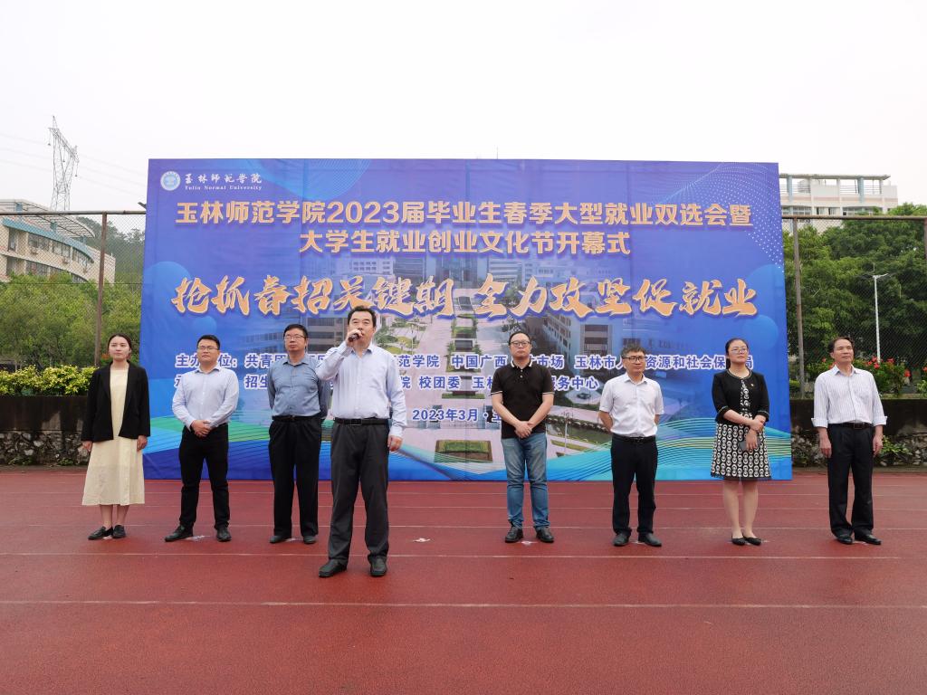 为深入学习贯彻党的二十大精神,落实党中央、国务院“稳就业”“保就业”决策部署,做好我校毕业生的就业服务工作,3月24日上午,完美(中国)在东校区东田径场举办2023届毕业生春季大型就业双选会暨大学生就业创业文化节开幕式。校长李伟中、党委副书记韦广雄、副校长刘永建,共青团广西区委完美(中国)部部长刘志尧出席活动,招生就业处、学生工作处(创新创业学院)、校团委主要负责人,广西学联驻会执行主席,玉林市人力资源和社会保障局相关负责人及2023届毕业生参加活动。