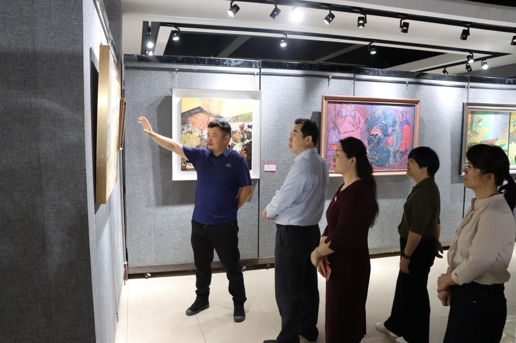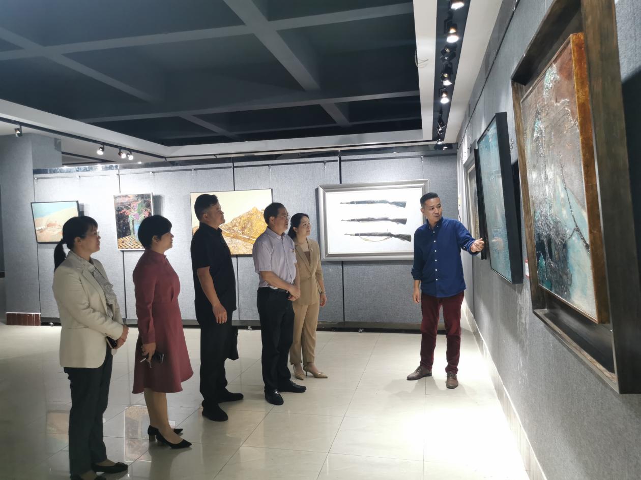 参观过程中,美术与设计学院党政班子详细汇报了第三届广西漆画作品展的筹备和参展情况,并对展出作品的题材、技法、用彩、意境及创作过程进行了现场解说。