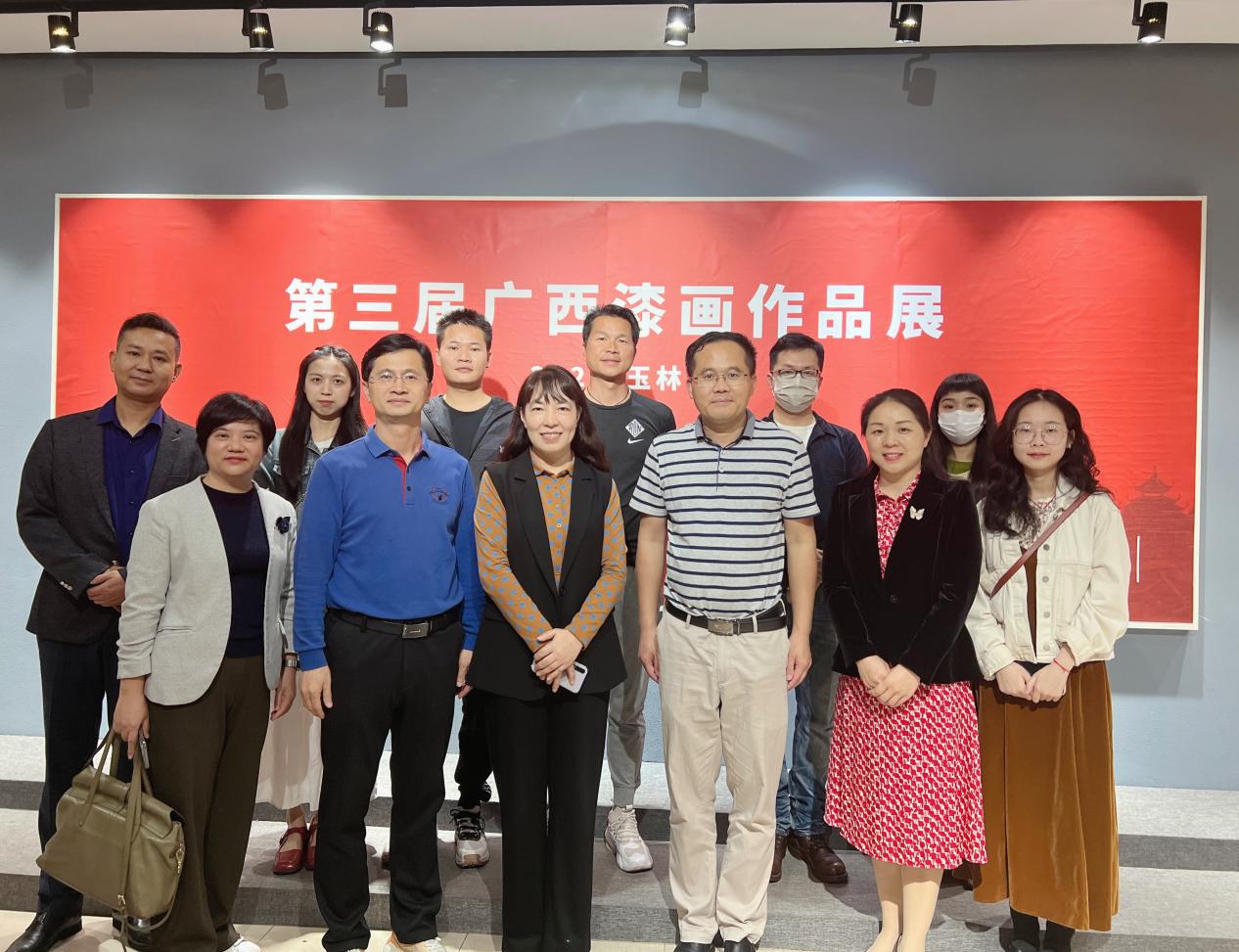 据悉,第三届广西漆画作品展共计收到漆画作品投稿280余幅,由广西美术家协会专家经过初评、复评两个环节,最终评选出119幅入选作品展出,其中我校师生作品入选11幅。