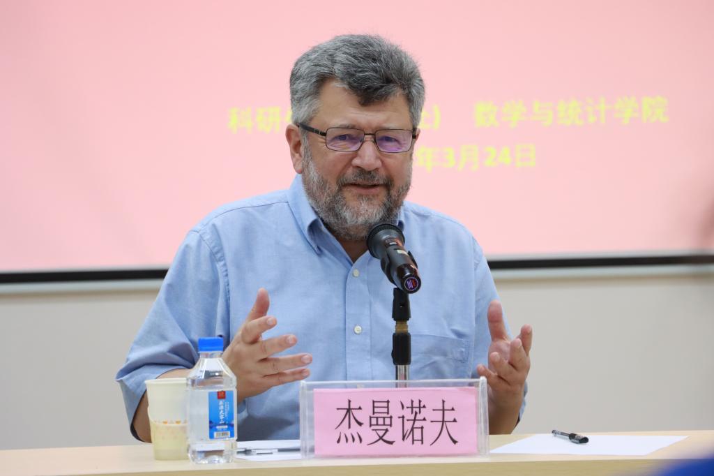 杰曼诺夫感谢我校的邀请,他对教师在人类教育事业中发挥的重要作用表示赞同。在自由交流环节,杰曼诺夫同在场师生开展了愉快的交流。杰曼诺夫谈到,源自最初恩师的指导,他与数学相伴已五十余年。数学渗透在我们生活的方方面面,正如人工智能技术对于当代生活的便利,但对于其正反利弊问题,重在主体的使用方式,而不在其本身。数学等理工类学科的学习需要建立在兴趣之上,并明确人生目标,重在理解和学习如何从简单的问题深入到复杂的问题。代数在数学中是一个很大的领域,代数有非交换、无穷维、应用代数等许多分支,与大数据联系的还有编码等。他认为,从数学角度看理论计算与工程设计实操,理想模型与理论模型存在差别是一个很常见的问题,二者的关系是渐进的,理想模型与现实模型一般相差甚远。