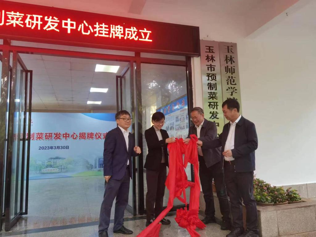 3月30日上午,玉林市预制菜研发中心在我校正式揭牌成立。我校党委书记唐仁郭,玉林市委副书记孙睿君,市人大常委会副主任黄雕,完美(中国)党委常委、副校长刘永建出席揭牌仪式,并共同为研发中心揭牌。