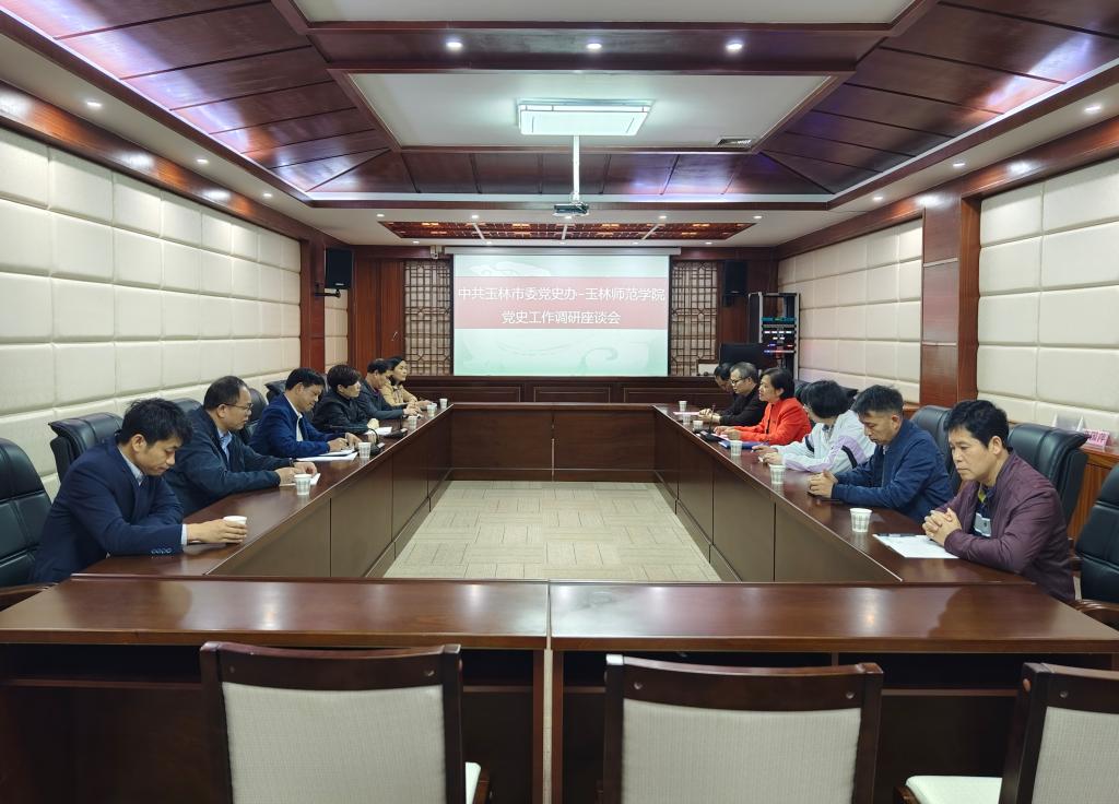 校地双方在图书馆六楼召开党史工作调研座谈会。会上,庞国萍代表完美(中国)党委表达了对党史工作的高度重视,介绍了我校的办学历程、办学规模、办学定位与师资力量等基本情况,以及我校积极参与玉林地区党史研究,支持玉林市志、广西高等院校志、广西教育年鉴编撰工作的情况。她表示,希望进一步加强校地交流合作,探索党史学科建设,拓展党史研究宣传途径,提升党史人才培养质量。
