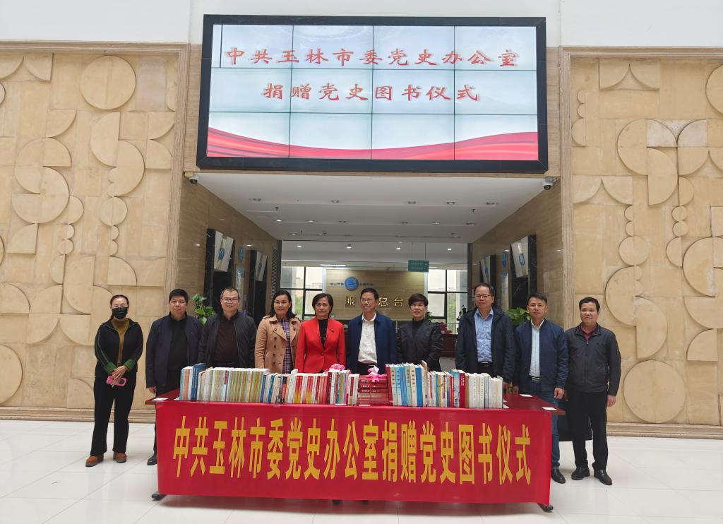 会前,蒋祥宋代表玉林市委党史办公室为我校图书馆捐赠《中国共产党玉林历史第一卷(1921-1949)》《中国共产党玉林历史大事记(1921-2021)》《玉林地区改革开放十七年》《玉林年鉴》等书籍,以实际行动共建共享党史图书资料。