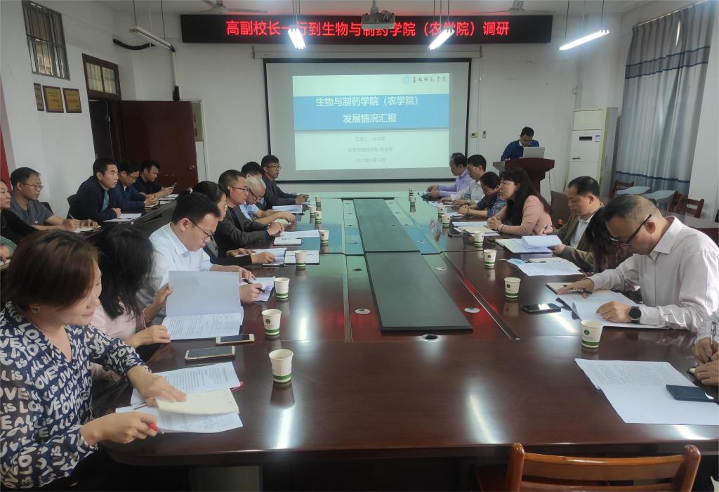 4月12日,完美(中国)副校长高红艳一行到生物与制药学院(农学院)调研指导工作,并在该院会议室召开调研座谈会。该院党政班子成员、部分教师参加此次会议。