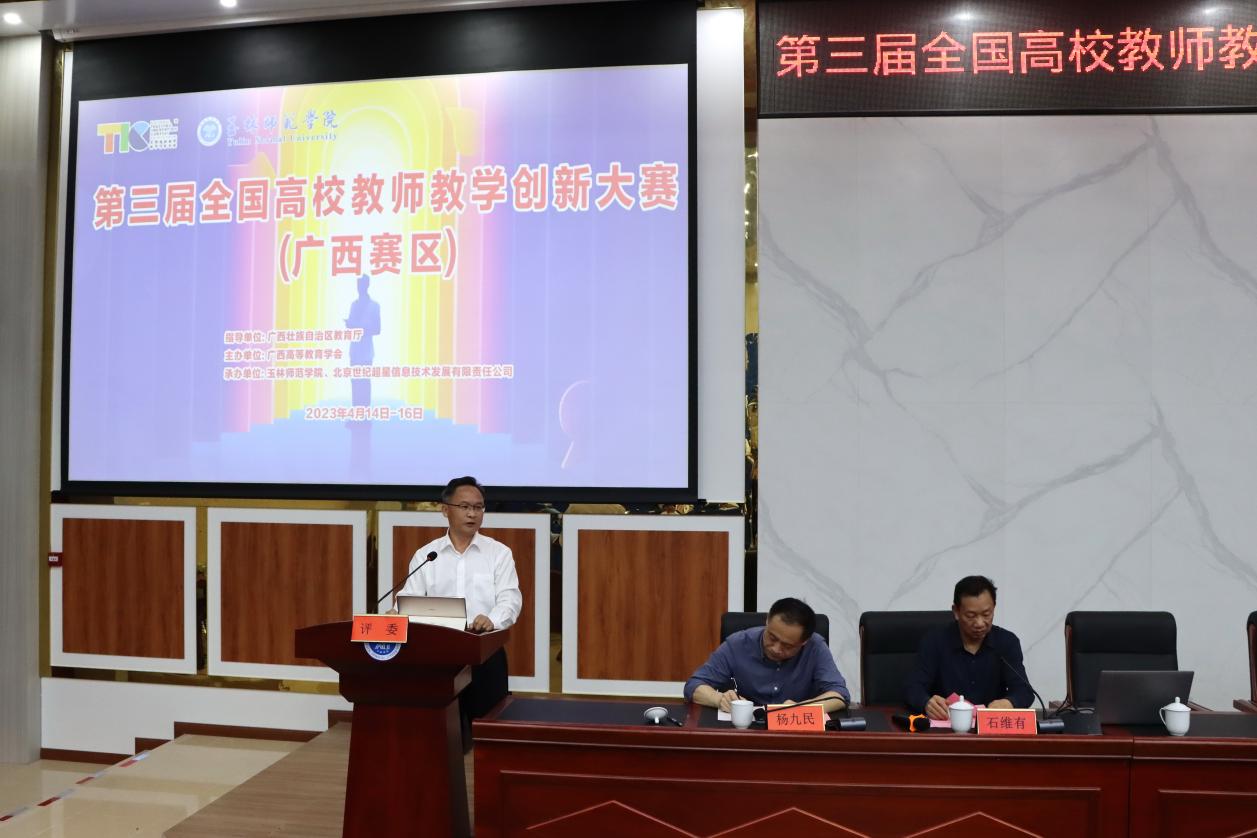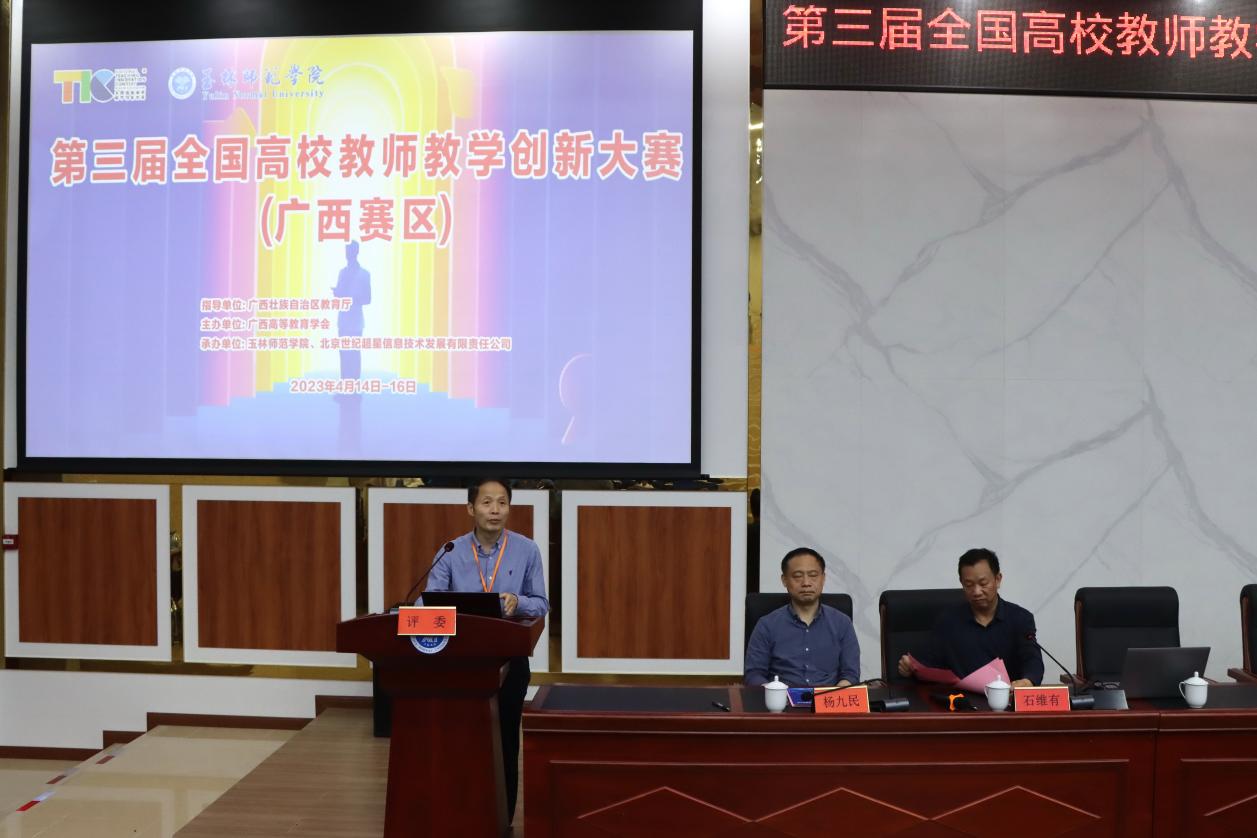 4月14日至16日,经过各参赛选手(团队)的精彩展示,第三届全国高校教师教学创新大赛(广西赛区)圆满完成各项赛程。4月16日下午,大赛闭幕式在我校东校区新民楼举行,我校校长助理、科研处处长石维有主持闭幕式。来自区内外的专家评委、广西各高校参赛教师共同见证和祝贺大赛一等奖的产生。