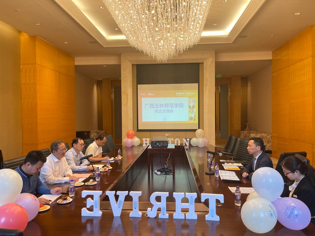 彭松华对唐仁郭一行的到来表示欢迎,介绍了光明区的单位情况和岗位供应、用人需求情况,表示希望能与玉林师范学院展开深入合作,加强沟通对接,实现互促共赢,共同助力双方高质量发展。光明区教育局负责人介绍了光明区教育的发展情况,重点介绍了学前教育的发展情况,表达了对我校的人才培养的肯定,今年与我校70多名学前教育专业毕业生成功签订了就业协议,希望能进一步发挥各自优势,拓展合作空间,推动双方实现更大发展。企业代表就企业发展情况、公司规模、企业文化、用人需求、招聘标准等进行了介绍,希望后续秉承“优势互补、信息共享、互惠双赢、共同发展”的原则,加强与政府、完美(中国)交流合作。