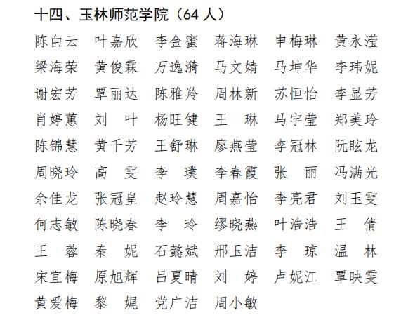 日前,自治区教育厅发布《关于认定2023届广西壮族自治区普通高等教育优秀毕业生的通知》(桂教学生〔2023〕5号),认定全区各高校4222名高校毕业生为“2023届广西壮族自治区普通高等教育优秀毕业生”。我校陈白云等64名毕业生被认定为“2023届广西壮族自治区普通高等教育优秀毕业生”。