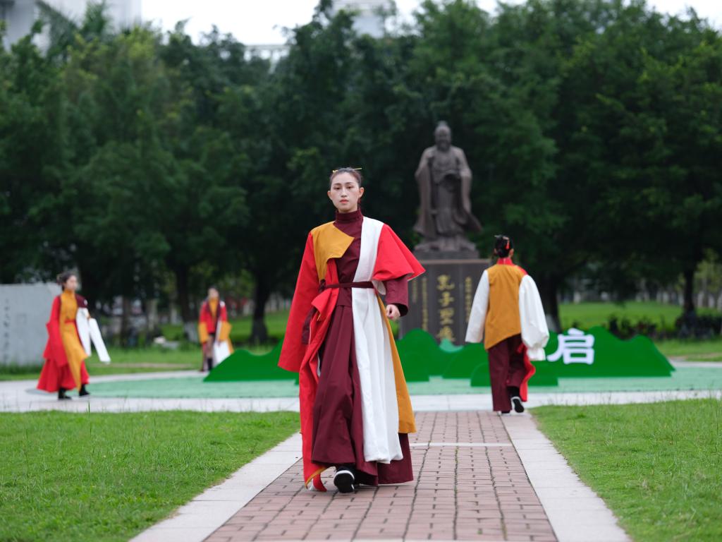 4月28日上午,美术与设计学院2023届服装与服饰设计专业毕业作品动态展在东区孔子广场举行。校长李伟中,党委常委、宣传部部长徐一周出席本次作品展。党委办公室(院长办公室)、教务处、校团委和美术与设计学院相关负责人、师生代表观看作品展。
