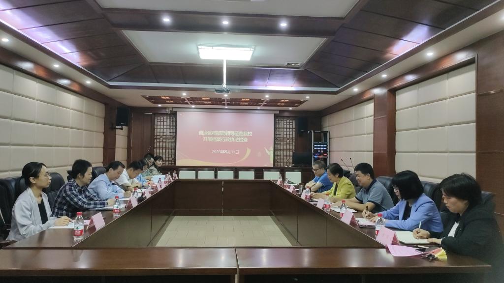 5月11日上午,自治区档案局二级巡视员韦家友带领检查组一行3人到我校开展档案行政执法检查,并召开座谈会。玉林市委办副主任、档案局局长黎乾,玉林市档案馆馆长梁昭燕;我校党委常委、组织部(统战部)部长庞国萍,图书馆(档案馆)负责人参加检查。