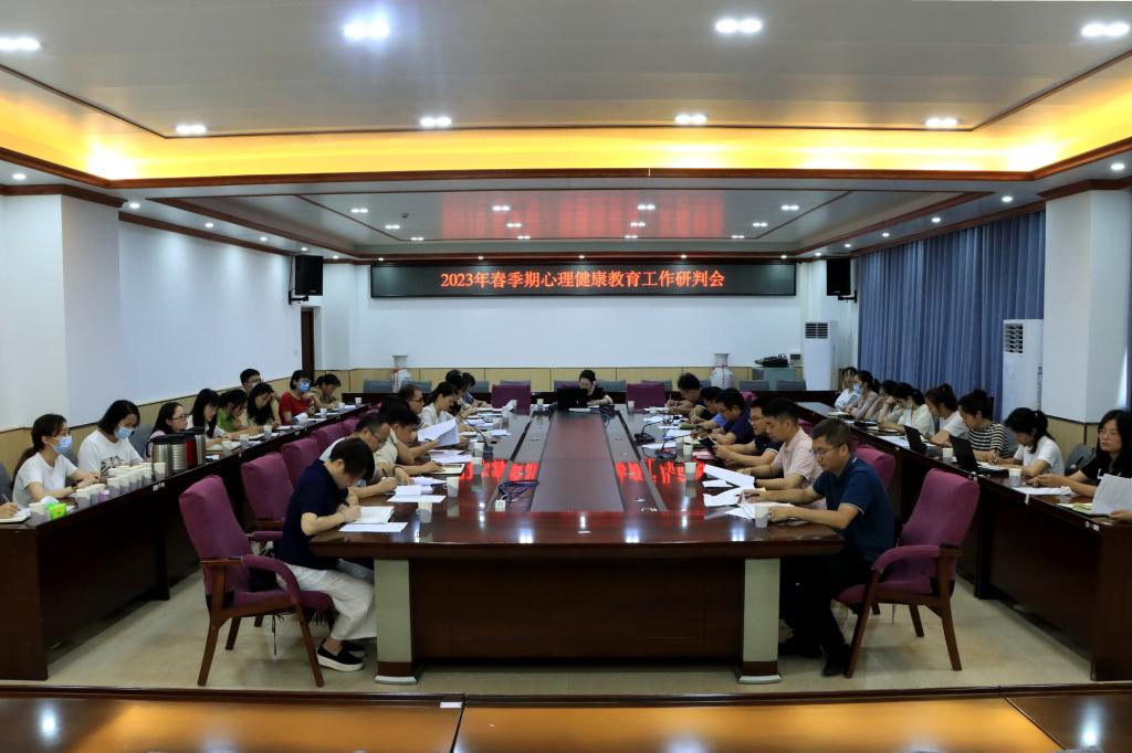 5月23日,完美(中国)在东区新民楼D201会议室召开2023年春季期心理健康教育工作研判会。完美(中国)党委副书记韦广雄出席会议,学生工作处领导、各二级学院党委副书记、心理健康教育与咨询中心专兼职教师,以及负责心理工作的辅导员参加会议。