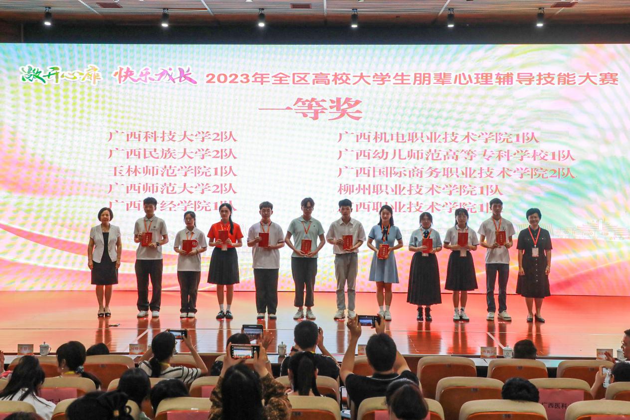 据悉,本次大赛以“敞开心扉,快乐成长”为主题,分为心理健康知识短视频制作、心理健康知识测试、现场朋辈心理辅导模拟三个环节,全区高校共有101支参赛队伍,其中本科组53支。我校参赛队伍积极备赛、沉着应对、发挥出色,最终凭借优异的成绩取得大赛一等奖,充分展现了我校朋辈心理互助员扎实的知识基础、实践技能以及良好的精神面貌。