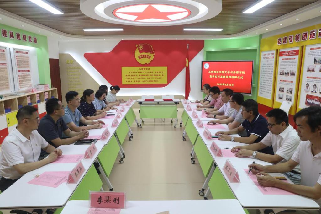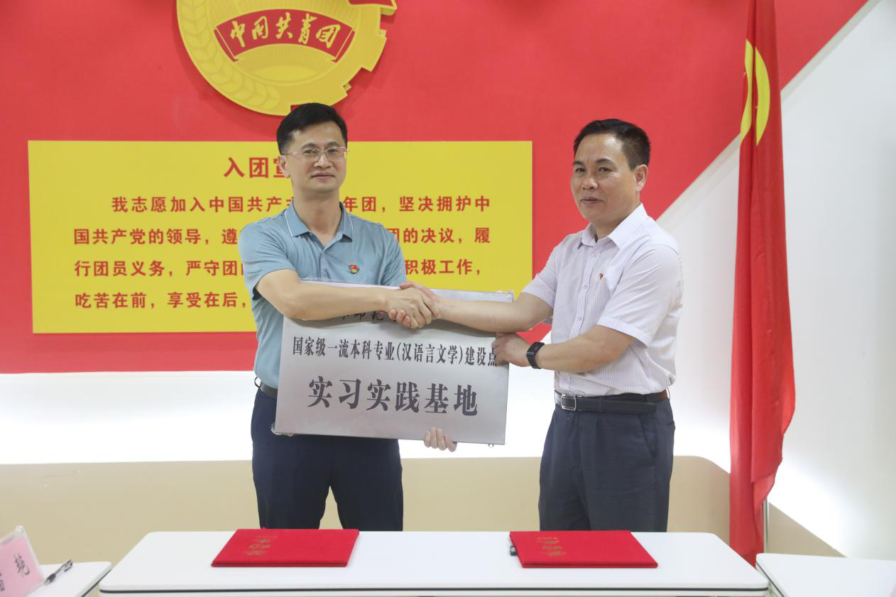 随后,韦宏明为玉林高中附属中学“国家级一流本科专业(汉语言文学)建设点实习实践基地”授牌。双方进行汉语言文学国家级一流本科专业共建座谈,与会人员结合工作实际,对如何开展共建、提高人才培养质量进行了研讨和交流。