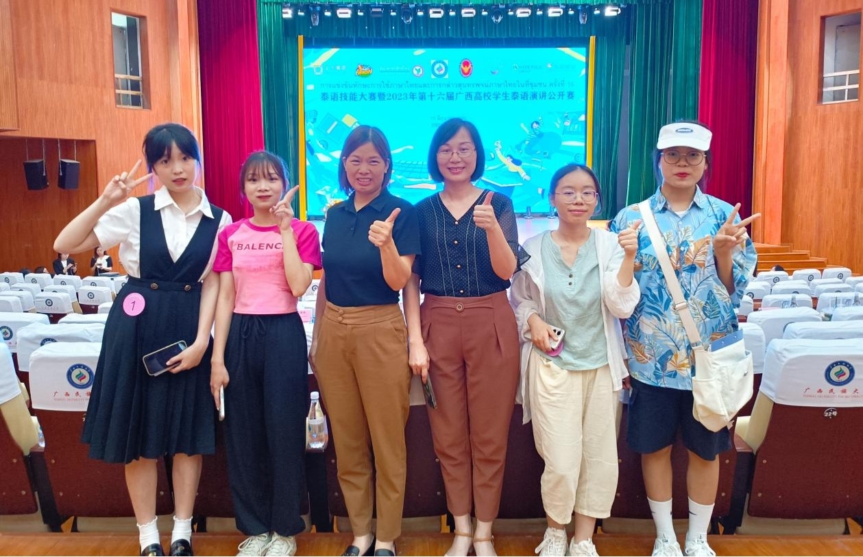 6月10日,泰语技能大赛暨2023年第十六届广西高校学生泰语演讲公开赛在广西民族大学思源湖校区大学生活动中心大礼堂举办。我校外国语学院英语(3+1)专业的两名学生韦晓霞、杨璧菲取得非专业组三等奖的好成绩。带队参赛的指导老师为梁雪婷、陈春梅。