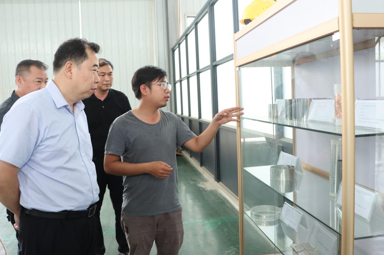 李伟中一行在玉柴工业园工委书记李岗的介绍下,对广西先进装备制造城(玉林)新材料育成中心进行现场考察。现场工作人员为李伟中介绍了育成中心正在开发的新材料和设备运行情况。