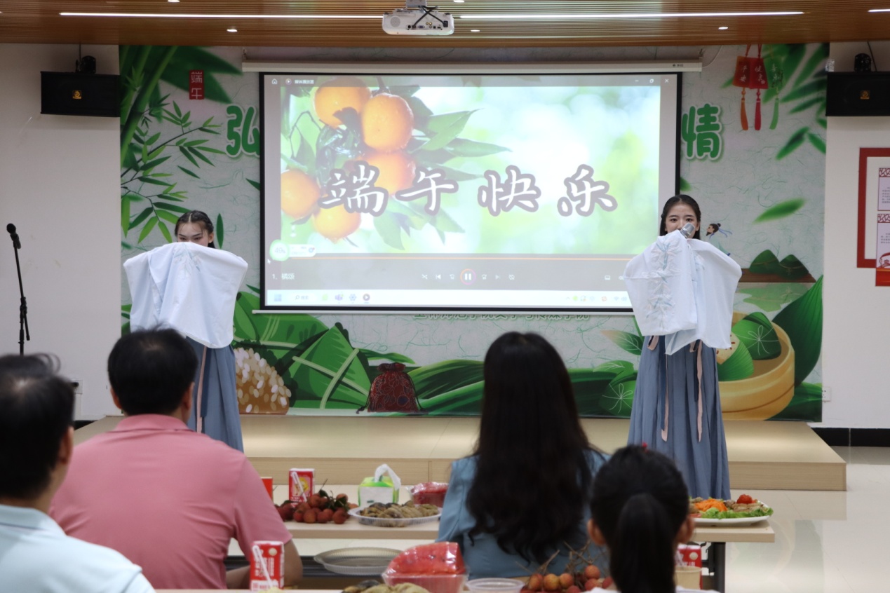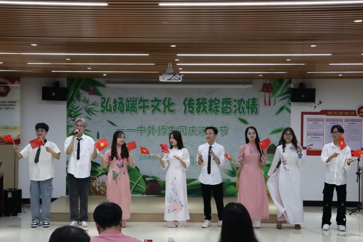 节分端午自谁言,万古传闻为屈原。第二环节诗歌吟诵与朗诵。文学与传媒学院学生声情并茂朗诵的《橘颂》颂扬了屈原的高尚情操和志愿;越南留学生杨文得借诗歌朗诵《水调歌头·明月几时有》表达对中国传统节日的歌颂与赞叹;越南留学生黄氏金舒的朗诵的《木兰诗》展现了中国诗歌的无穷魅力。