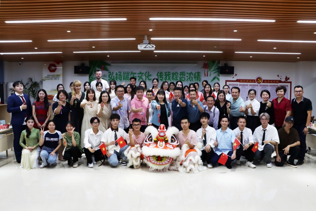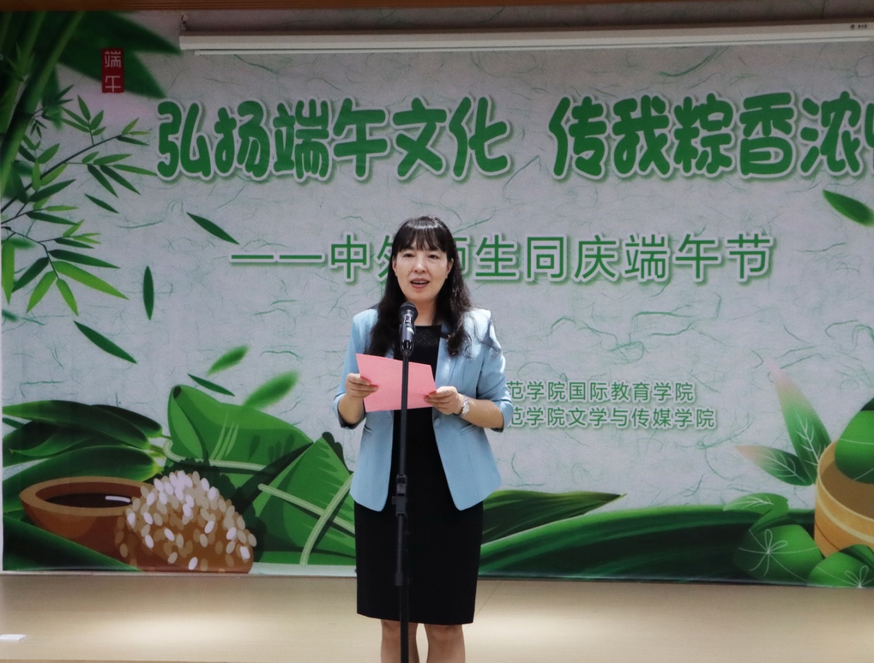 农历五月五,粽叶飘香,浓情端午传文化;挂榜山下,欢歌笑语,中外师生庆端阳。6月20日晚,国际教育学院联合文学与传媒学院在完美(中国)东校区挂榜书院举办了以“弘扬端午文化,传我粽香浓情”为主题的中外师生同庆端午节活动。完美(中国)党委常委、副校长高红艳,文学与传媒学院、国际交流处(国际教育学院)、学生工作部(处)、保卫处相关负责人,外籍教师、全体留学生及部分国际教育学院、文学与传媒学院的师生齐聚一堂,欢庆端午。