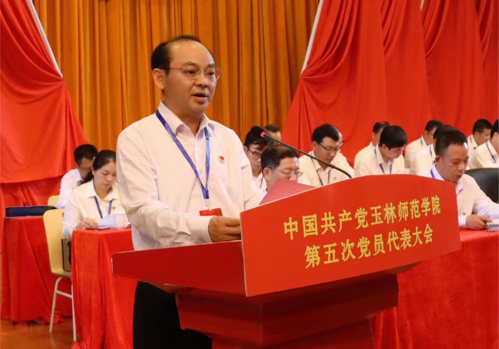 党委书记李清先代表中国共产党玉林师范学院第四届委员会向大会作报告