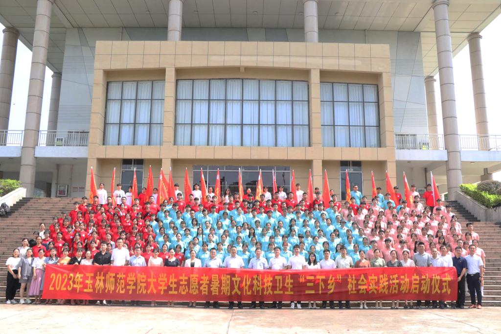 仪式在庄严的国歌声中拉开序幕。徐一周宣读了《关于公布2023年玉林师范学院大学生志愿者暑期文化科技卫生“三下乡”社会实践活动立项团队的通知》。陆红霞就如何开展好实践锻炼对大学生志愿者提出三点希望:一是不怕苦、能吃苦,在实践中锻炼坚强意志;二是勤学习、善学习,在实践中提高本领才干;三是要敢担当,善作为,在实践中发挥聪明才干。