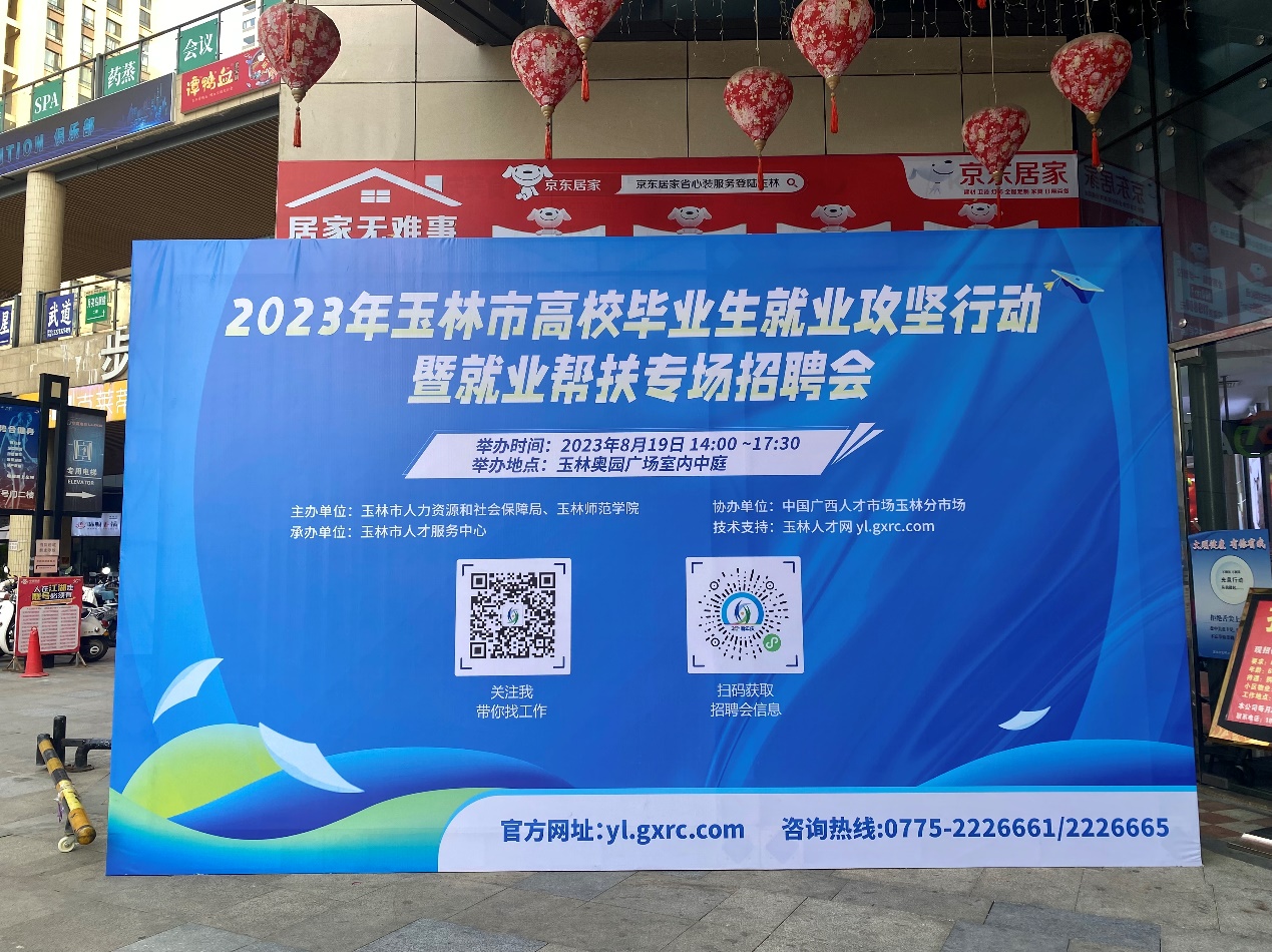 为更好解决毕业生就业难问题,缓解当前毕业生就业压力,8月19日下午,我校联合玉林市人力资源和社会保障局在玉林奥园广场举办2023年玉林市高校毕业生就业攻坚行动暨就业帮扶专场招聘会。