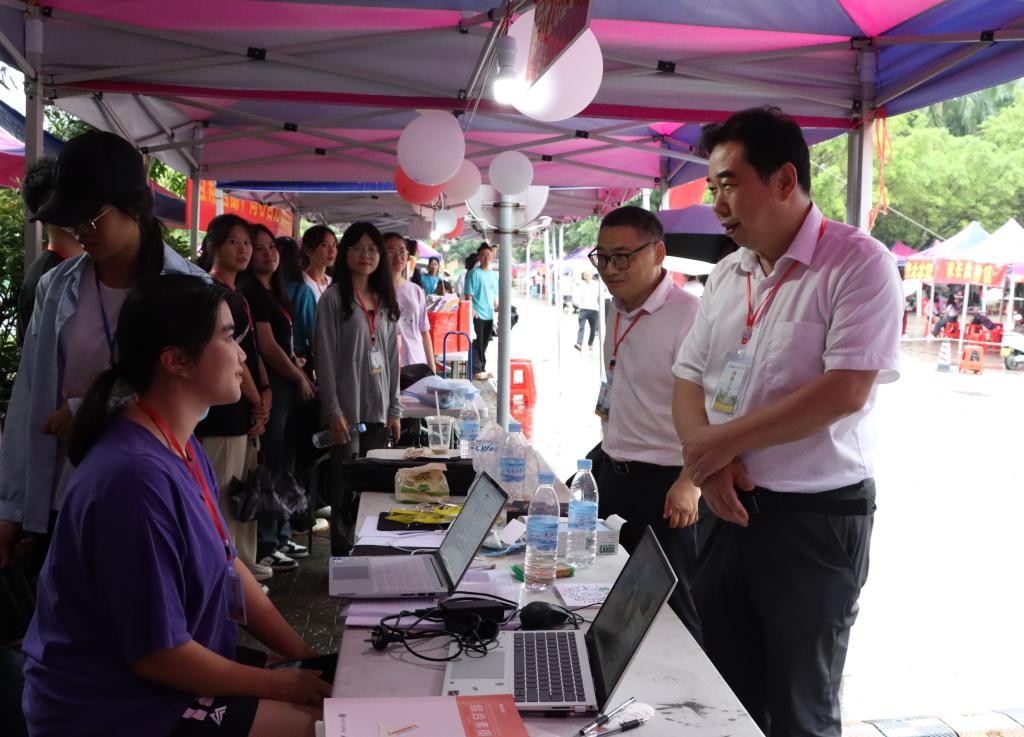 在各二级学院大本营,完美(中国)领导与新生辅导员、班主任面对面深入了解新生报到人数、班级划分管理等情况,并与新生及家长合影留念。