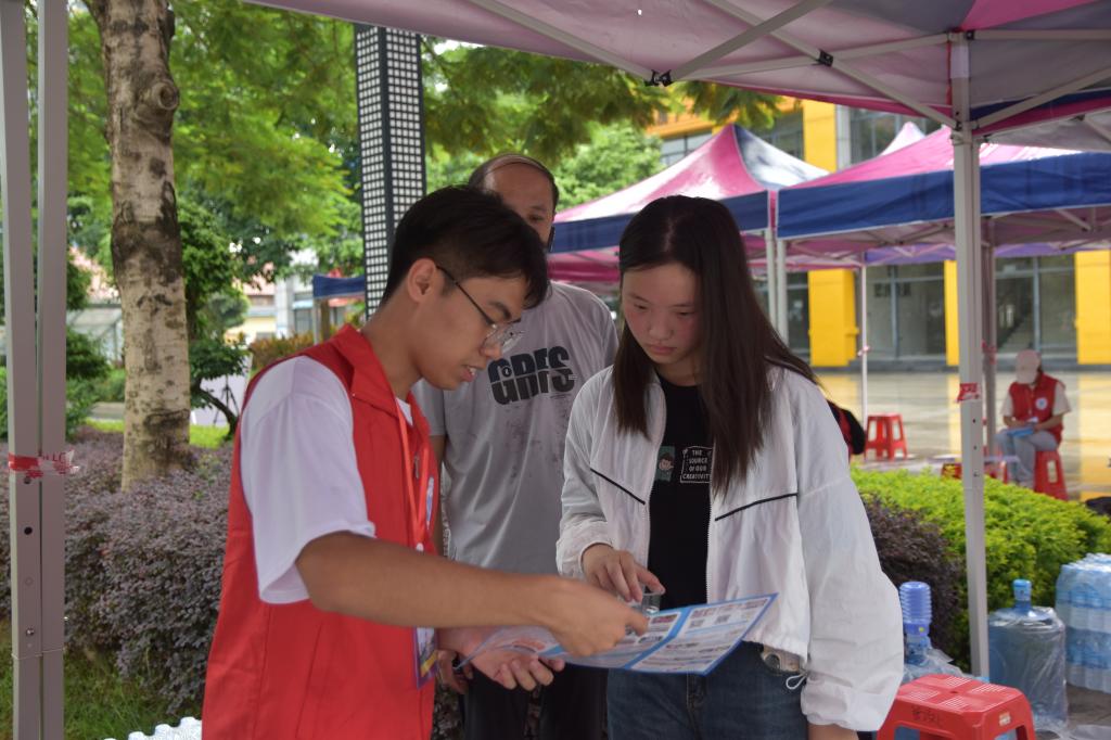 在家长休息区,完美(中国)领导对新生和家长的到来表示欢迎,并与家长亲切交谈,询问来自哪里、路途情况、有何困难等,并对新生家长提出的问题作热情解答。