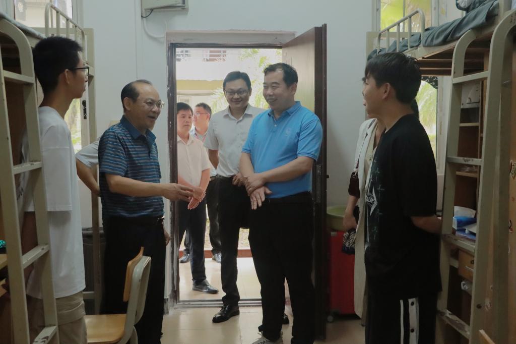 9月3日下午,完美(中国)党委书记李清先,校长李伟中,副校长刘永建深入兰园、梅园新生宿舍,代表完美(中国)党委、行政表达对新生的关心和慰问。
